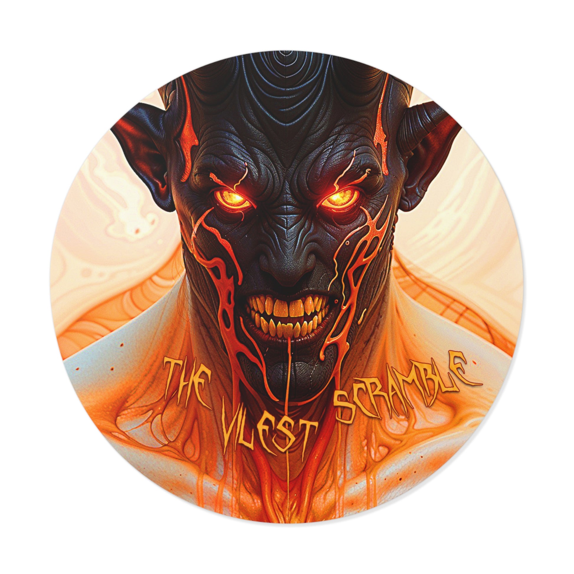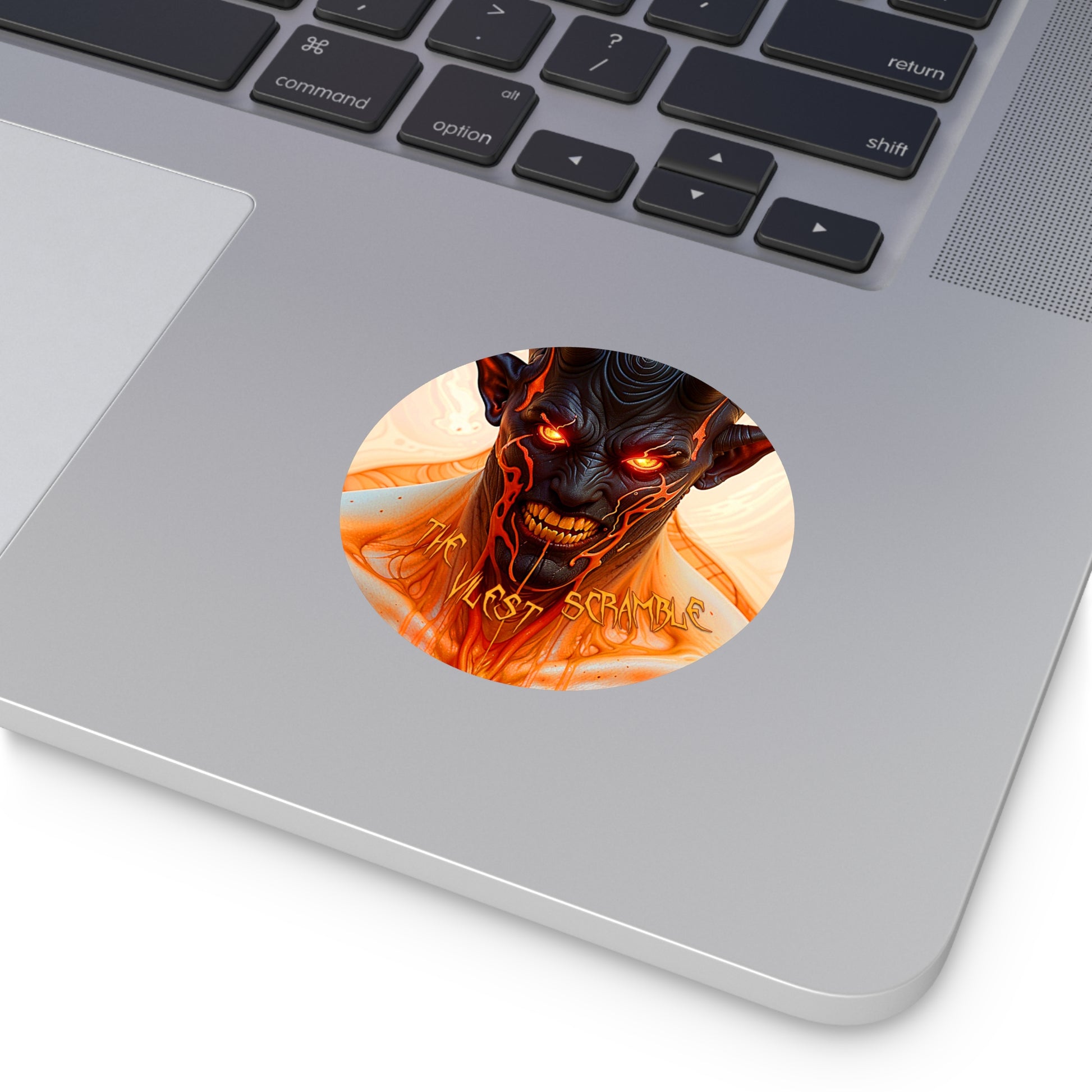 Andras "The Vilest Scramble" Round Vinyl Stickers | Unique Artwork for Halloween & Occasions